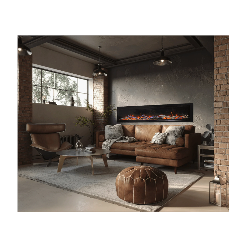 Slim, Modern Frame – Large viewing area with true-to-life LED flames.