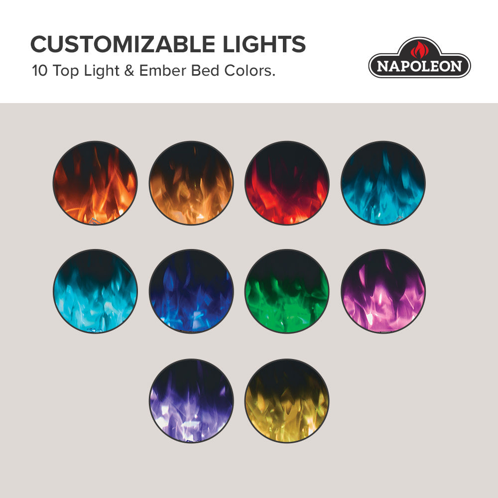 - 6 color ember bed with cycle and fade-in and fade-out modes