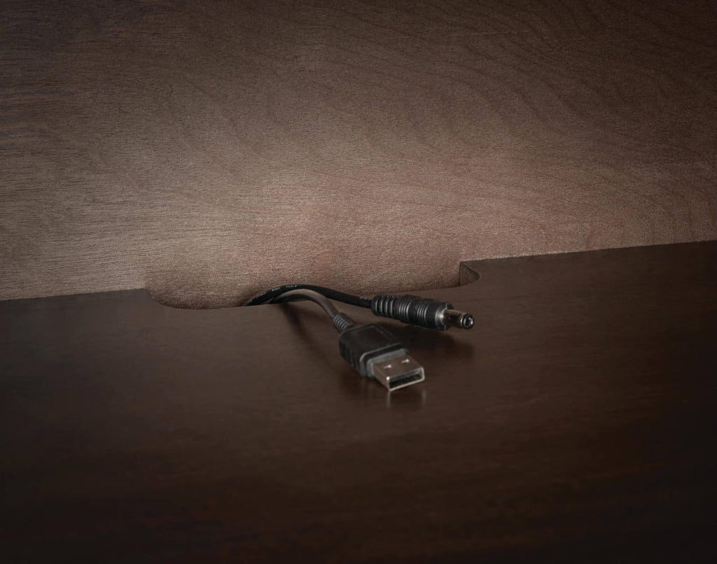 Hidden Organization – Keep your entertainment area tidy with a built-in media compartment and clever wire management system for a clean, seamless look.