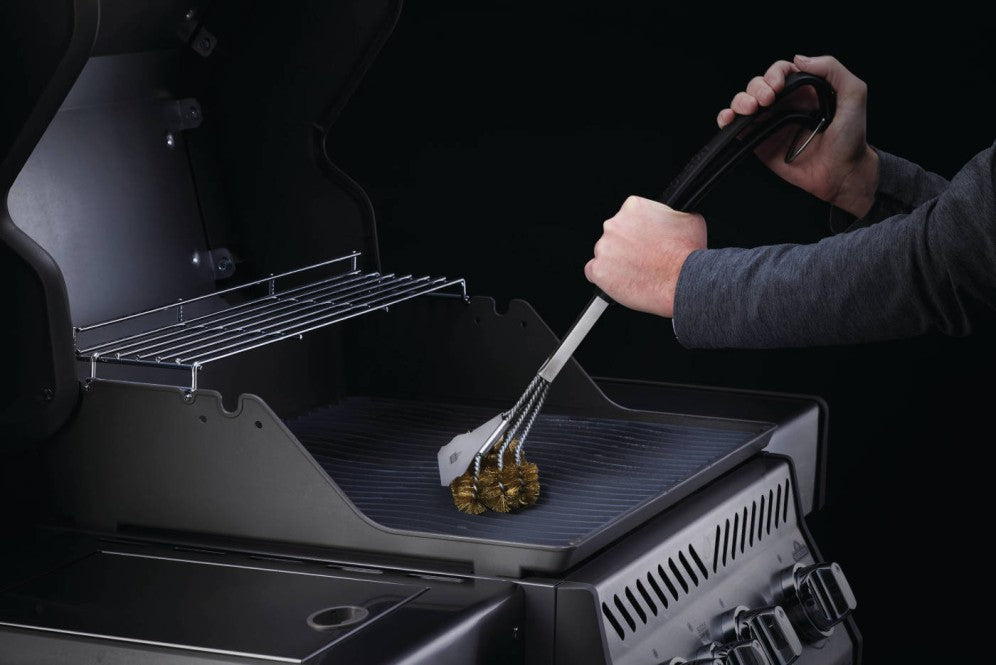 Durable Brass Bristles: Special brass bristles remove stuck-on food from your grill grates gently, helping protect and extend the life of your cooking grids.