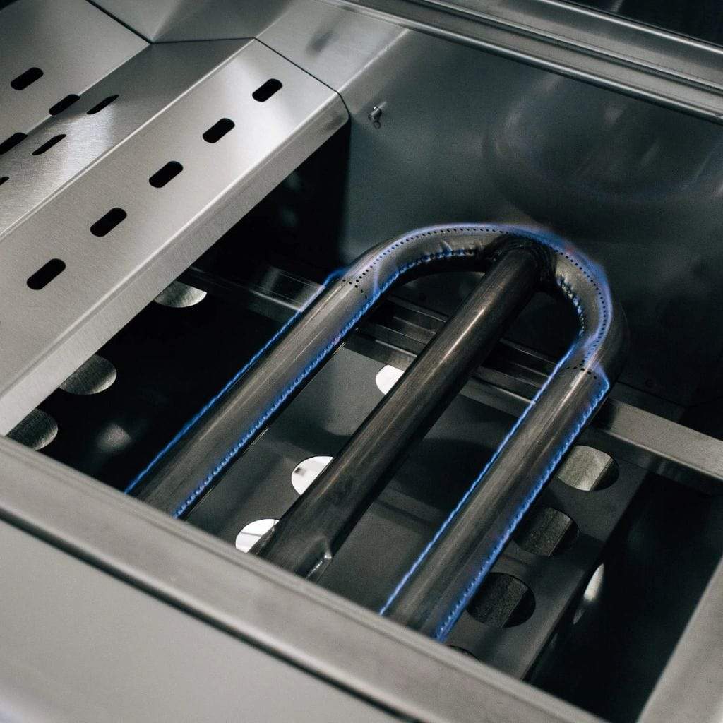 Powered by two stainless steel U-tube burners producing a total of 52,000 BTUs, the SBG30 delivers consistent, high-heat performance across a spacious 541 sq. in. cooking surface. The 14-gauge stainless steel flame tamers minimize flare-ups while ensuring even heat distribution, and the 9mm thick stainless steel cooking grates provide excellent heat retention for superior searing.